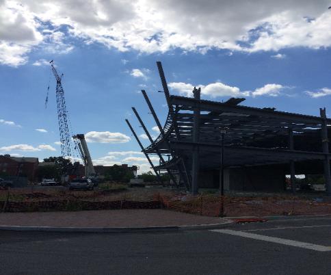 4-Story office building - Philadelphia Navy Yard. Leaning columns, curved perimeter,